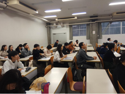 2018年11月20日下午,师生们前往早稻田大学,加入大塚英明教授用英文讲授的公司法的课堂学习。大塚教授的讲授激情澎湃,深入浅出,将公司法法条用鲜活的案例一一呈现,逻辑流畅,思维缜密,仅在短短的时间内就让大家对日本公司法的法条有了深刻的理解。