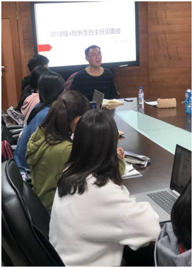 2018年11月24日下午,2018级四班名誉班主任见面会于东荣大厦716会议室召开。大学生导师、宪法与行政法教研部刑斌文老师出席了本次见面会,为同学们的学习与大学生活提供指导。