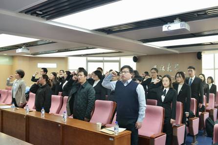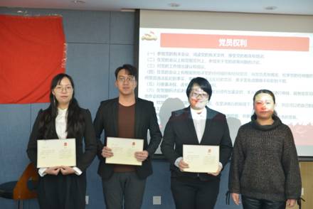 35名新党员在领誓人骆旷达同志和监誓人徐杰同志的带领下,一起面向党旗,举起右手,向党旗宣誓,新党员们在宣誓中表达了自己的决心。宣誓结束后,郑诺同志宣读了《党员的权利和义务》,每位党员一边听着宣读,一边将权利义务牢记在心。希望新党员能够在今后坚持履行党员义务,行使好党员权利。