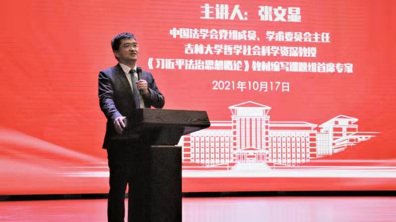 张文显教授本次讲授的是“习近平法治思想导论”,主要从习近平法治思想的形成发展、习近平法治思想的提出过程、习近平法治思想的科学定位、习近平法治思想的理论体系、习近平法治思想的学习要领五个方面展开。
