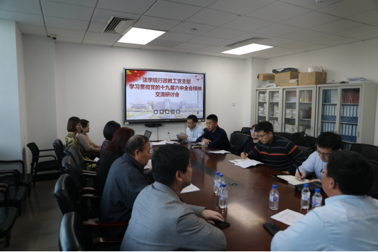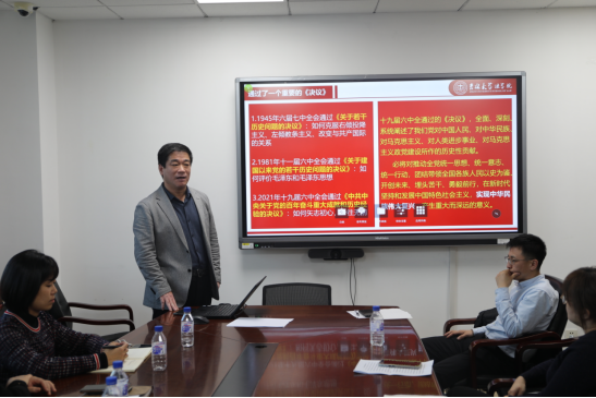 行政教工党支部在东荣A708会议室召开党员大会,开展学习贯彻党的十九届六中全会精神交流研讨活动。学院党委书记周春国、副书记兼副院长林媛媛、副书记张俊峰、行政副院长吕欣以及支部全体党员参加了活动。研讨会由行政教工党支部书记刘舰主持。