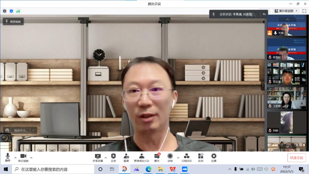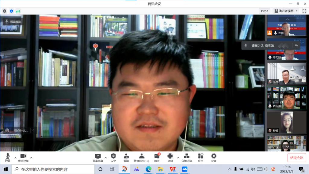 闵春雷老师结合本学期授课情况、开展读书会等工作内容,分享了经验与体会,并就如何吸引学生、设计案例、修改课件、课堂讨论等方面交流了经验做法。闵老师在生活中关心每一位学生,介绍了疫情期间与学生线上观影的情况,最大程度舒缓学生情绪,增进了师生情谊。