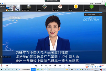首先,刘雪斌同志播放了习近平总书记4月25日在中国人民大学考察的新闻专题片,并在此基础上领学了习近平总书记在中国人民大学考察时强调坚持党的领导传承红色基因扎根中国大地,走出一条建设中国特色世界一流大学新路的重要讲话内容。会议号召党支部全体党员深刻领会讲话精神要义,提高政治站位,树立远大理想,努力进取,争取成为习近平总书记强调的“经师”和“人师”的统一者。