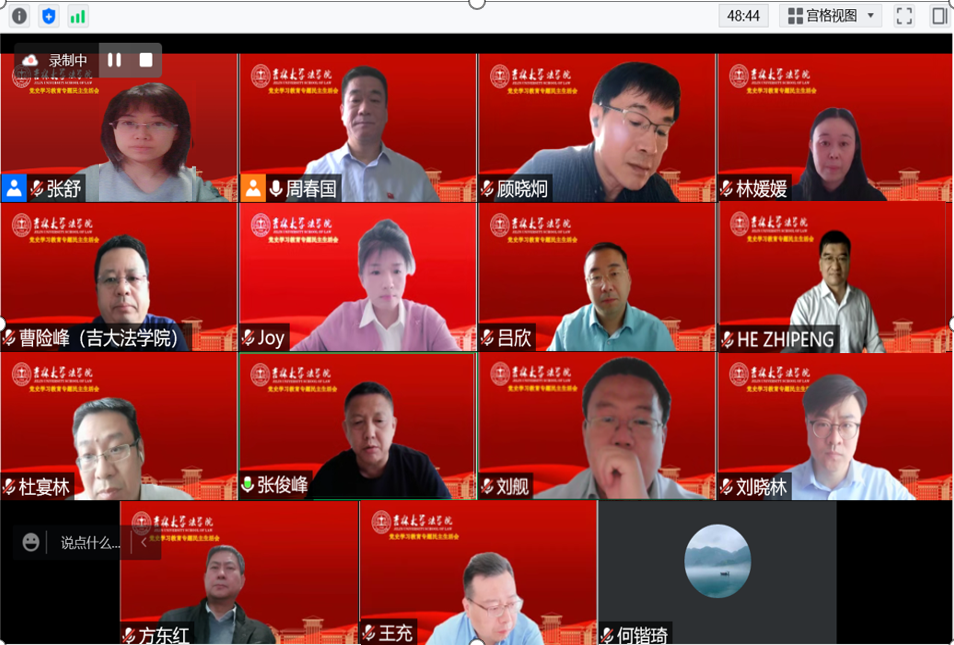 线上召开领导班子党史学习教育专题民主生活会。学校党史学习教育第三指导组组长顾晓炯、组员何凯琦、联络员方东红参会指导。会议由学院党委书记周春国主持。