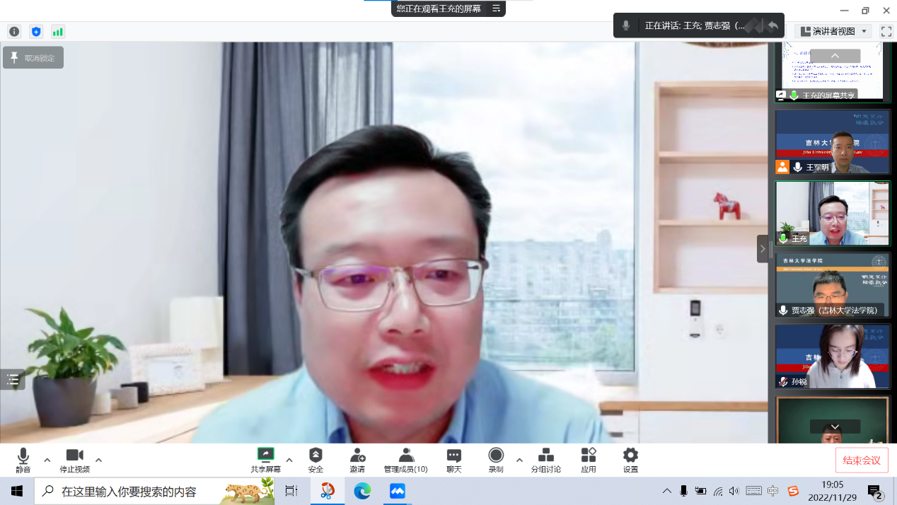 11月29日19:00,刑事法学党支部通过腾讯会议在线开展“砥砺奋进守初心 锐意进取谋新篇”深入学习贯彻党的二十大精神主题党日活动,刑事法学党支部部分党员参加,会议由党支部书记王军明主持。