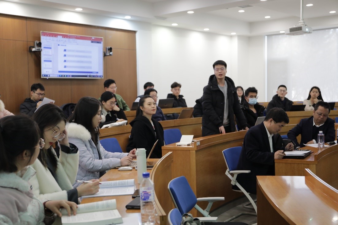 副院长曹险峰教授为成员做关于法学论文写作方法的专题授课。首先,曹险峰教授告诫各位成员,做人是做学术的前提,务必胸怀开阔,志存高远,用语言鼓舞他人,用文字传播思想。他激励大家积极发挥自主意识和自我学习能力,杜绝成为“伪学术人”。“参天大树在于扎根厚土”,扎实基础乃是学术之始,期望大家夯实基础,深耕法理,专注基础理论研究。缓跟风,多跟踪,防范路径依赖,审慎识别学术研究中的伪问题。其次,曹险峰教授从论文的选题、结构、文章文字、以及资料选取与搜集等方面,为各位成员开展论文写作的具体指导。做文献综述是向大师学习的过程,要耐心踏实,勿将其局限于论点的搜集与堆叠,要用综述打开思路,梳理论证逻辑。好的问题意识是论文成功的一半,务必留心观察,勤于思考,探索现实中的“真靶子”。此外,勤于练笔尤为重要,要及时将思维构建落实于论文写作。