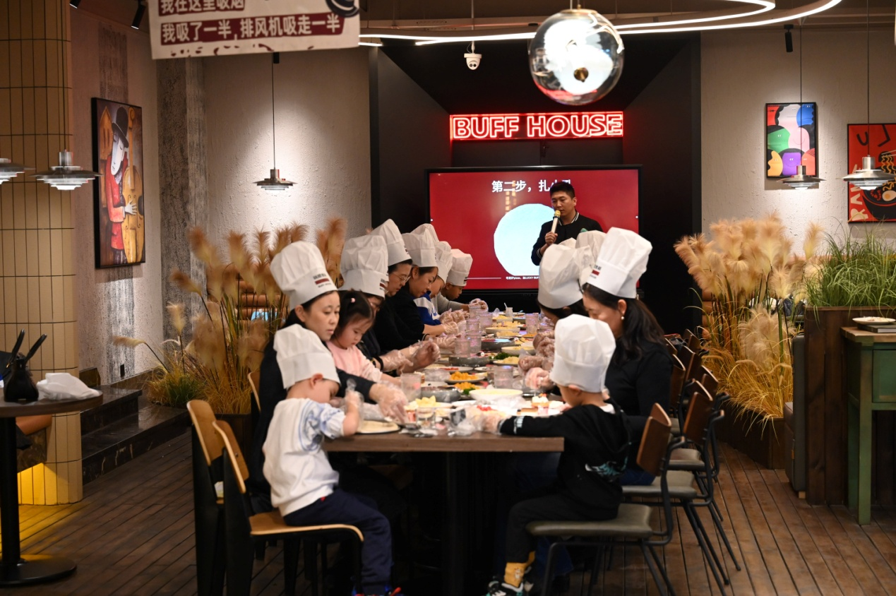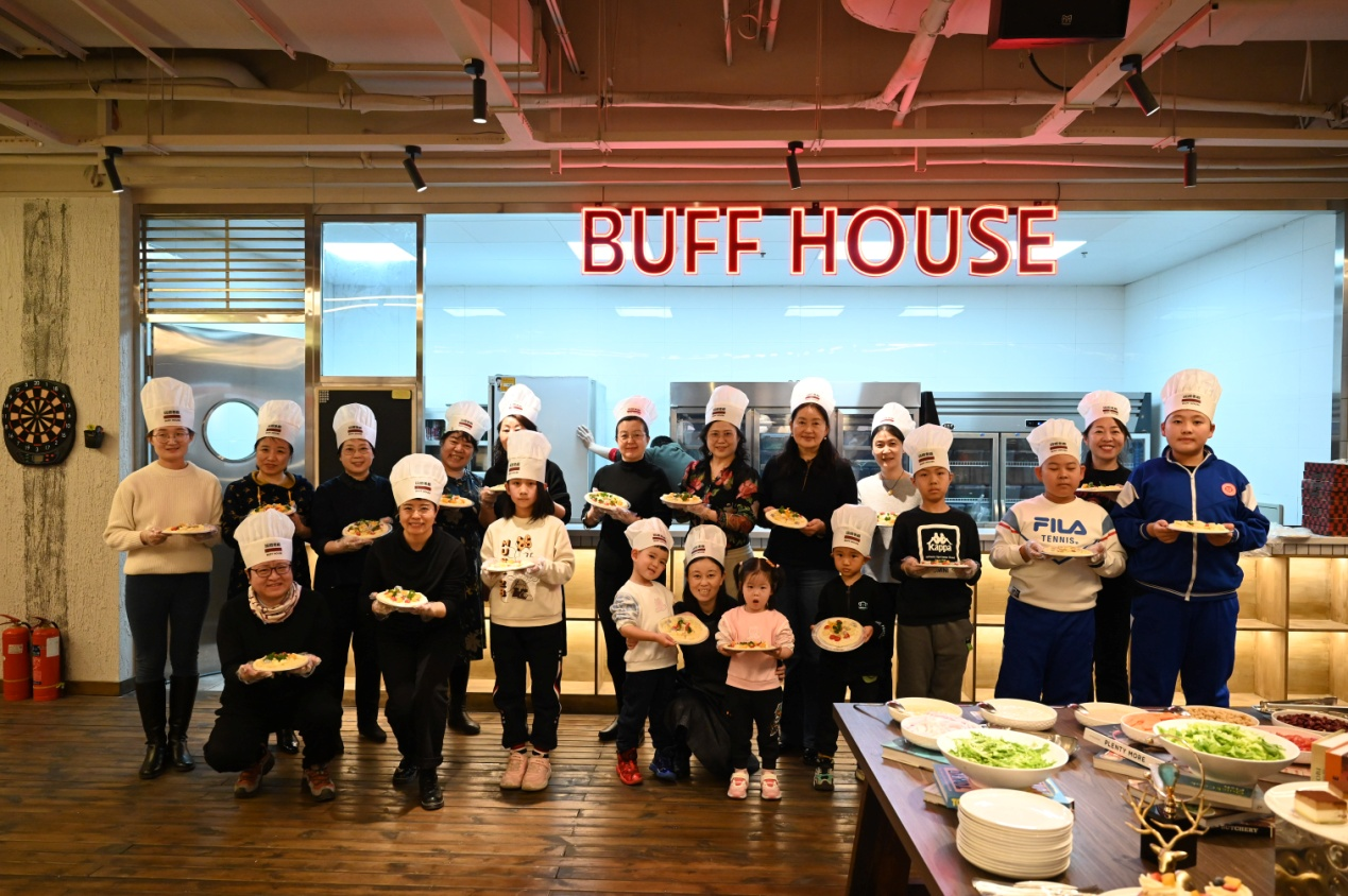 活动现场设置在家源学苑楼下的“玩披老板”披萨店内。为了欢迎老师们的到来,店内进行了精心布置,长条桌上也已经准备好了制作披萨的馅料和酱料。首先,由专门的老师为大家讲解披萨烘焙小知识,让大家对披萨的起源、种类有了了解,期间穿插了问答环节,大朋友和小朋友们都踊跃回答问题,现场氛围活跃,互动交流热烈。准备就绪之后,老师们按步骤动手制作,在面饼上添加配料,摆出自己喜欢的图案,一个个独一无二的披萨生胚呈现在眼前,大家纷纷和自己的作品拍照留念,节日气氛浓郁欢声笑语不断。在等待披萨出炉的茶歇间隙,老师们又兴致盎然地学习了西餐礼仪,谈天说地,分享生活中的小美好,感受相聚喜悦。二十多分钟后,披萨新鲜出炉,暖香扑鼻,大家按照之前分配的号码找到了自己制作的披萨,体验手做的欣喜,一起品尝满满的幸福味道。