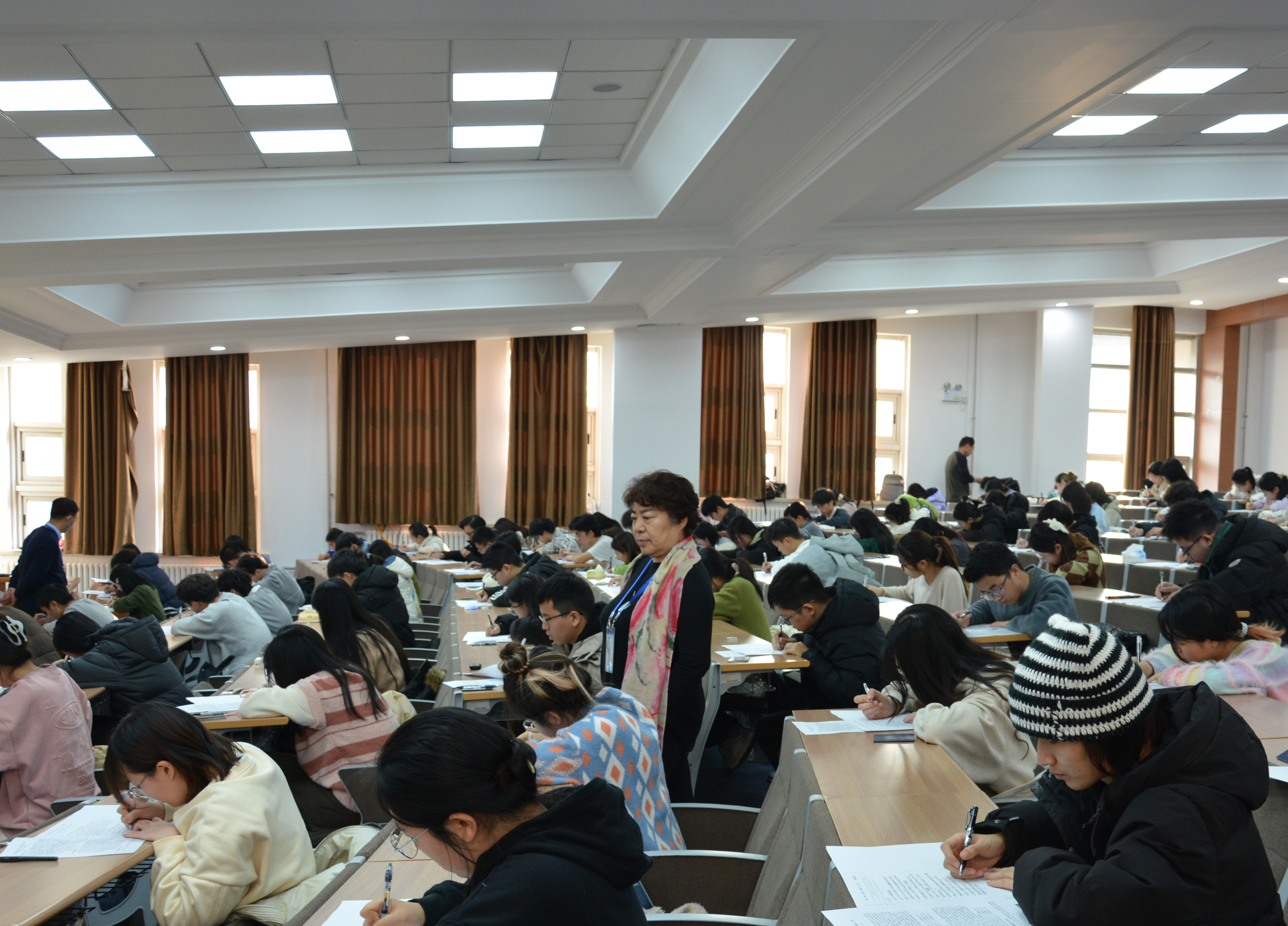 提前检查考场设施,周密组织命题,严肃监考纪律和考风考纪。进入考试阶段,院党委书记张杰、院长何志鹏、副院长刘晓林、副书记林媛媛、教学委员会主任王艳梅、教学督导专家张旭等领导和专家深入到各科考场,检查考试环境和考务组织,强调考试纪律,维护考场秩序,与主考教师进行沟通,督促监考教师规范操作,对于发现的问题和不足,第一时间解决和处理。通过细致的巡考和督查,有力保障了期末考试顺利进行。