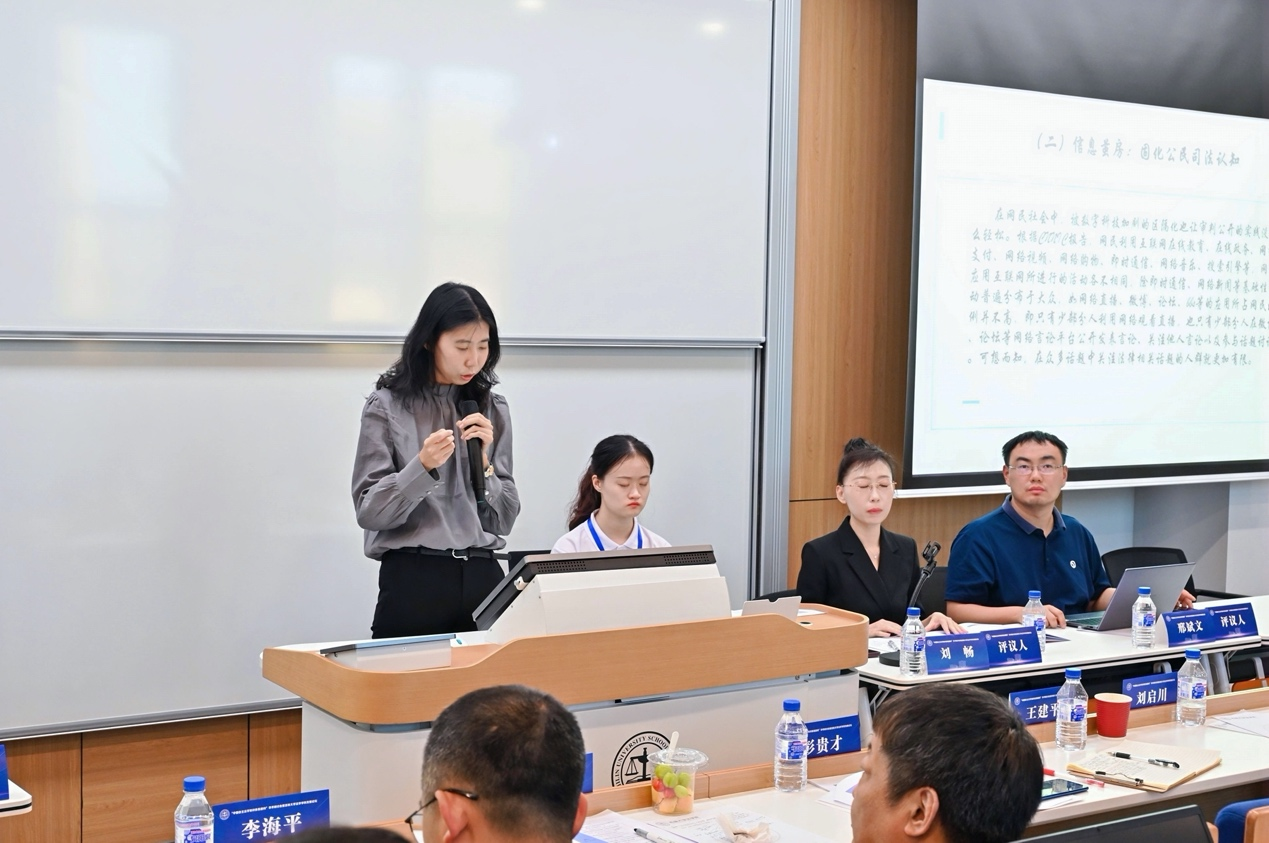 讲师于璐在“知情权平等实现视域下的数字化审判公开”的主题报告中,提出随着数字科技的发展并与审判活动深度融合,数字资源不均衡直接影响公民的司法认识,信息茧房间接固化了公民的司法认知等。应针对现实情况冲破数字鸿沟,采用多元化信息公开途径的同时优化算法,切实回应公民司法领域知情权的实际需求。