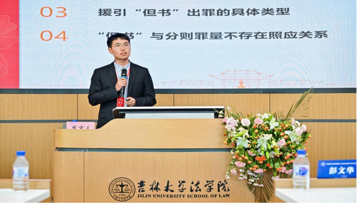 助理教授邢文升以“论中国特色的出罪制度——《刑法》第13条‘但书’”为题做主题报告。邢文升博士主张,援引“但书”出罪具备可行性与必要性,其应包含三种具体类型:影响行为危害程度的情节轻微,影响行为人的责任程度的情节显著轻微,影响行为人的预防必要性程度的情节显著轻微。