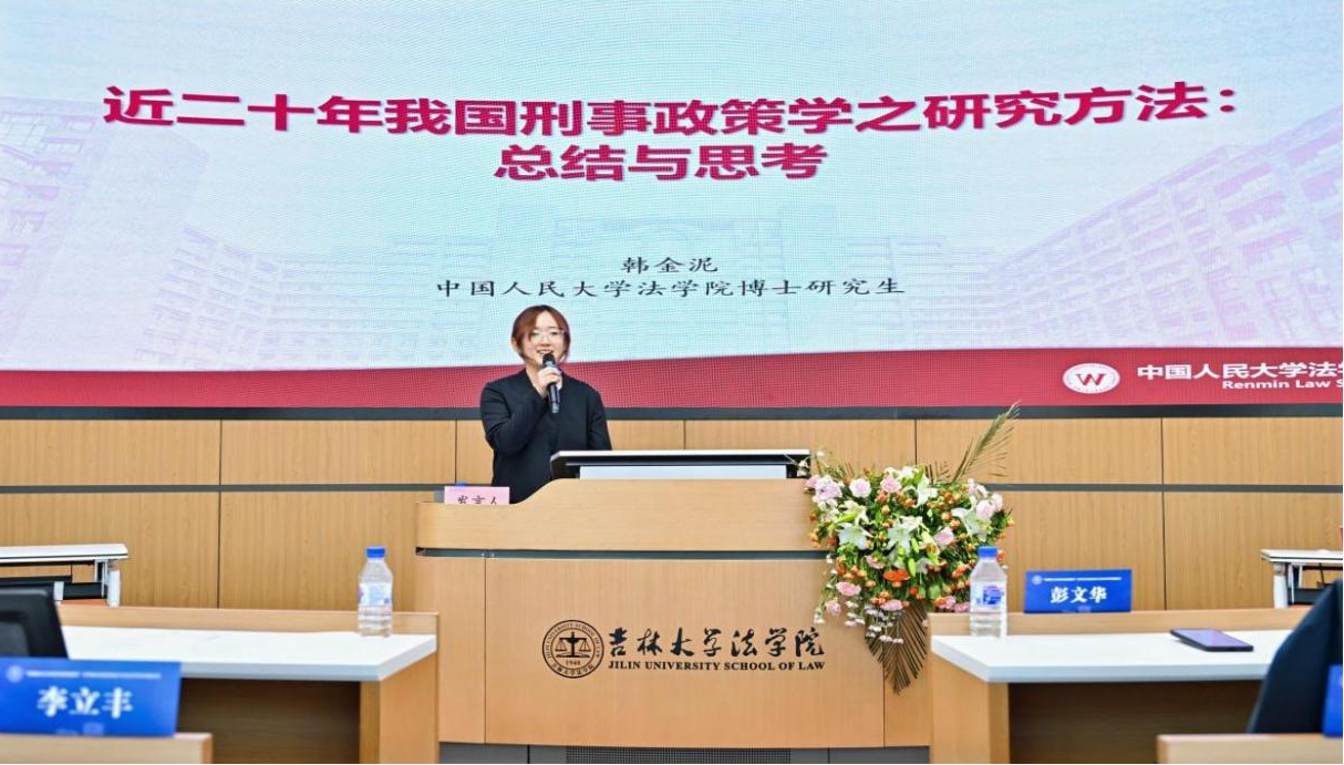 博士研究生韩金泥同学以“近二十年我国刑事政策学之研究方法:总结与思考”为题做主题报告。韩金泥同学表示,刑事政策研究应强化实证手段,避免“表面实证”;丰富实证路径,开辟新的视野;深化理论研究,构建学科特征;推进学科交叉,促进方法融合。