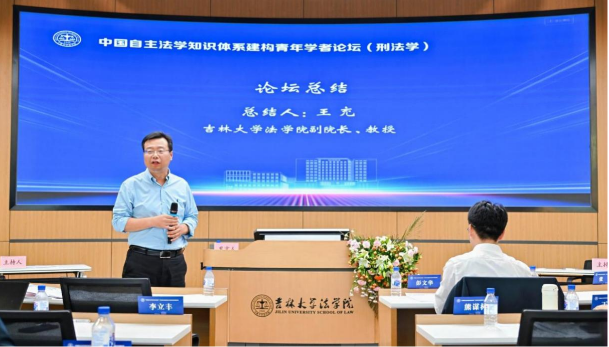 王充教授进行学术总结。王充教授表示,中国自主法学知识体系的建构有两个关键词:一个是“自主”即自己做主,我们要通过确立中国法学研究的主体性来实现自己做主;另一个是“共识”即通过充分的讨论达成基本价值共识,这是我们构建中国自主法学知识体系的基本前提。今天的论坛主题广泛、内容丰富、发言精彩、讨论充分,希望能够为中国自主刑法学知识体系的建构做出我们的贡献。