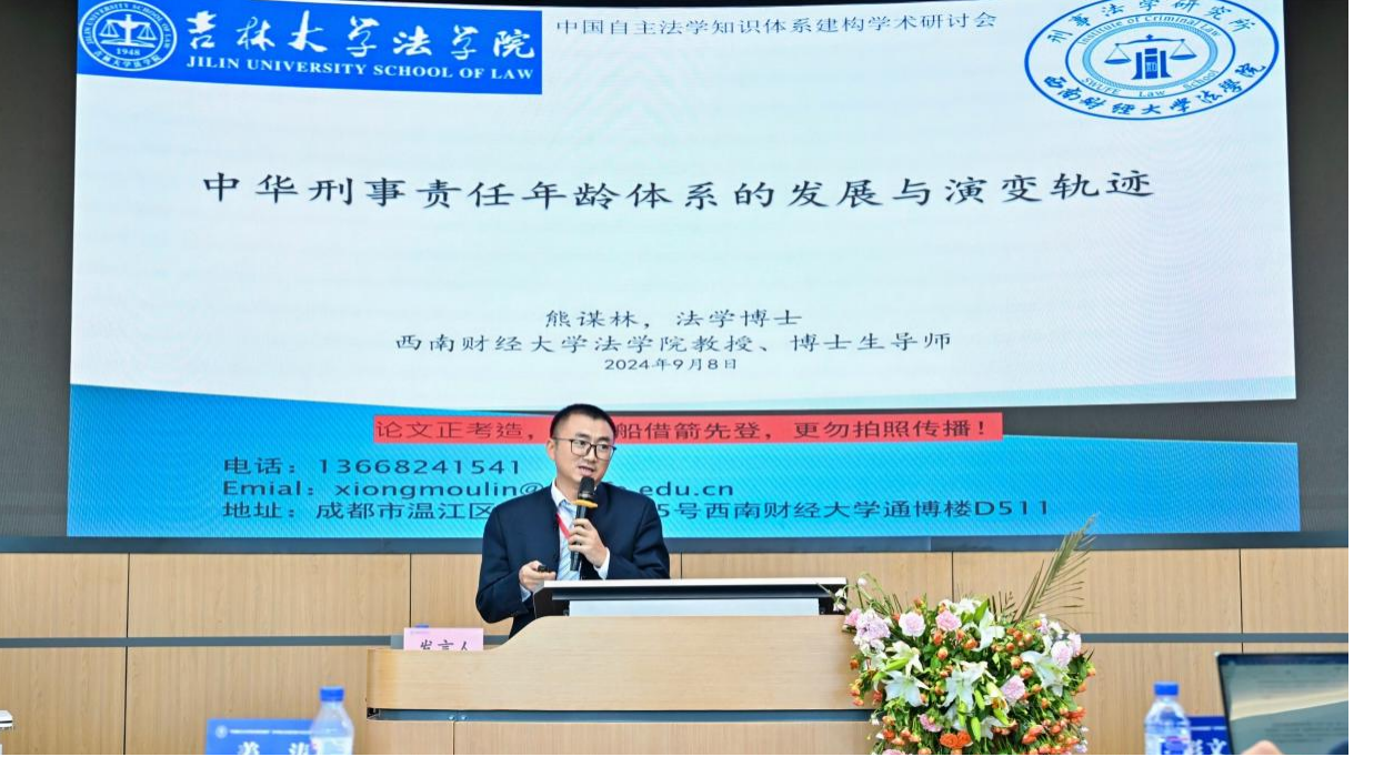 刑事法学研究所所长熊谋林教授以“中华刑事责任年龄体系的发展与演变”为题做主题报告。熊谋林教授建议:第一,要重视中华刑事责任年龄体系中的老幼对称,重视老年司法;第二,少年司法中可以参照十五、十六岁作为标准建立整套自主体系;第三,自主知识体系的建构要重视清末修律之前的中华刑律。