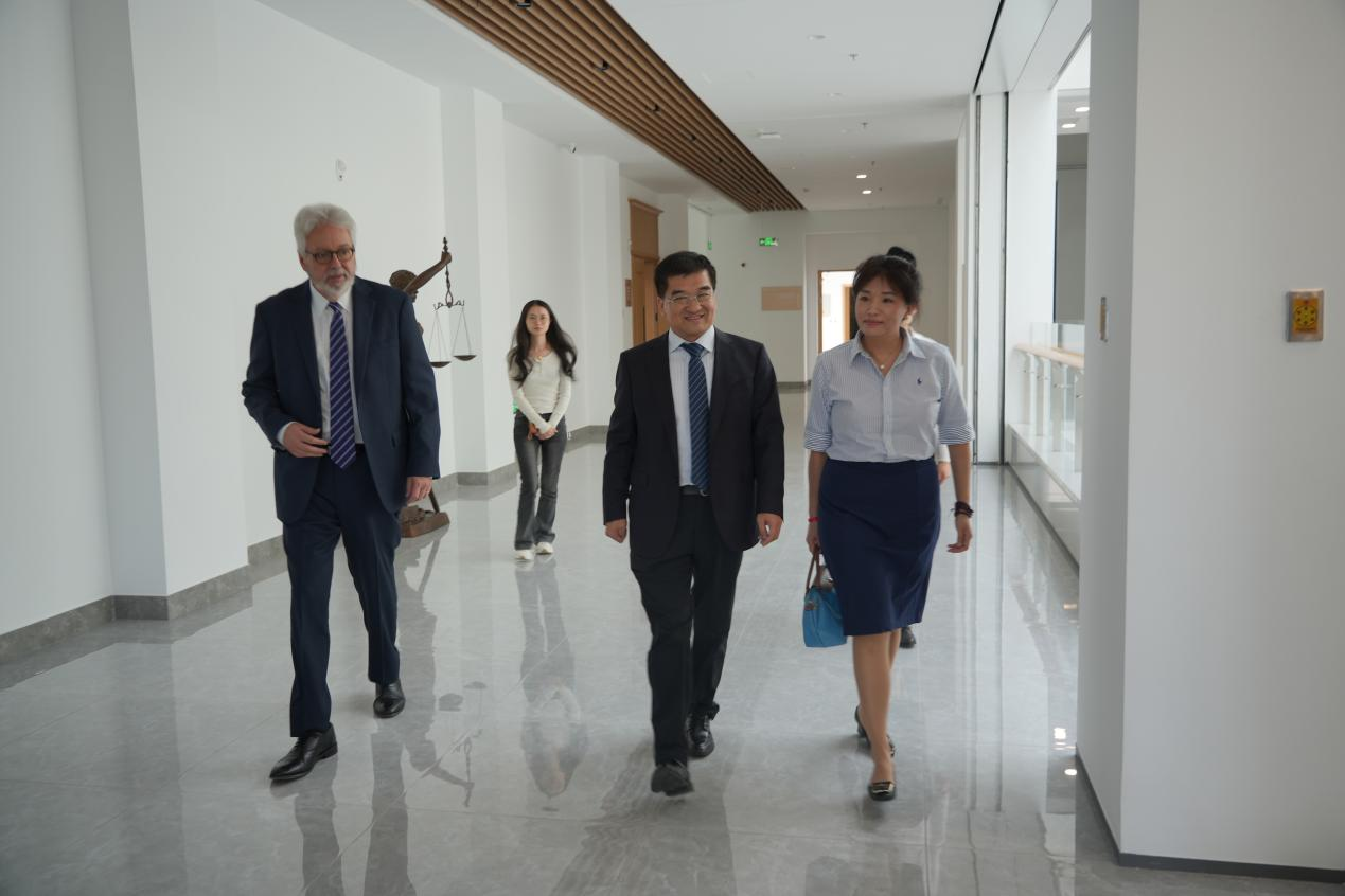 杰出客座教授John Linarelli结合美国律师协会法律与人工智能特别工作组关于人工智能与法律教育的调查结果,分享了对数字时代法学教育的思考。他提到,法学教育需要让学生能够理解法律概念、规则的含义和背后的逻辑。在实践领域,人工智能可以起到辅助作用,但是无法将案例提炼到理论层面,具备系统法学教育和实践经验的律师依旧是不可或缺的。来访期间,院长何志鹏教授带领John Linarelli教授参观了法学楼模拟法庭教室等区域,展示了法学楼的现代化设施。