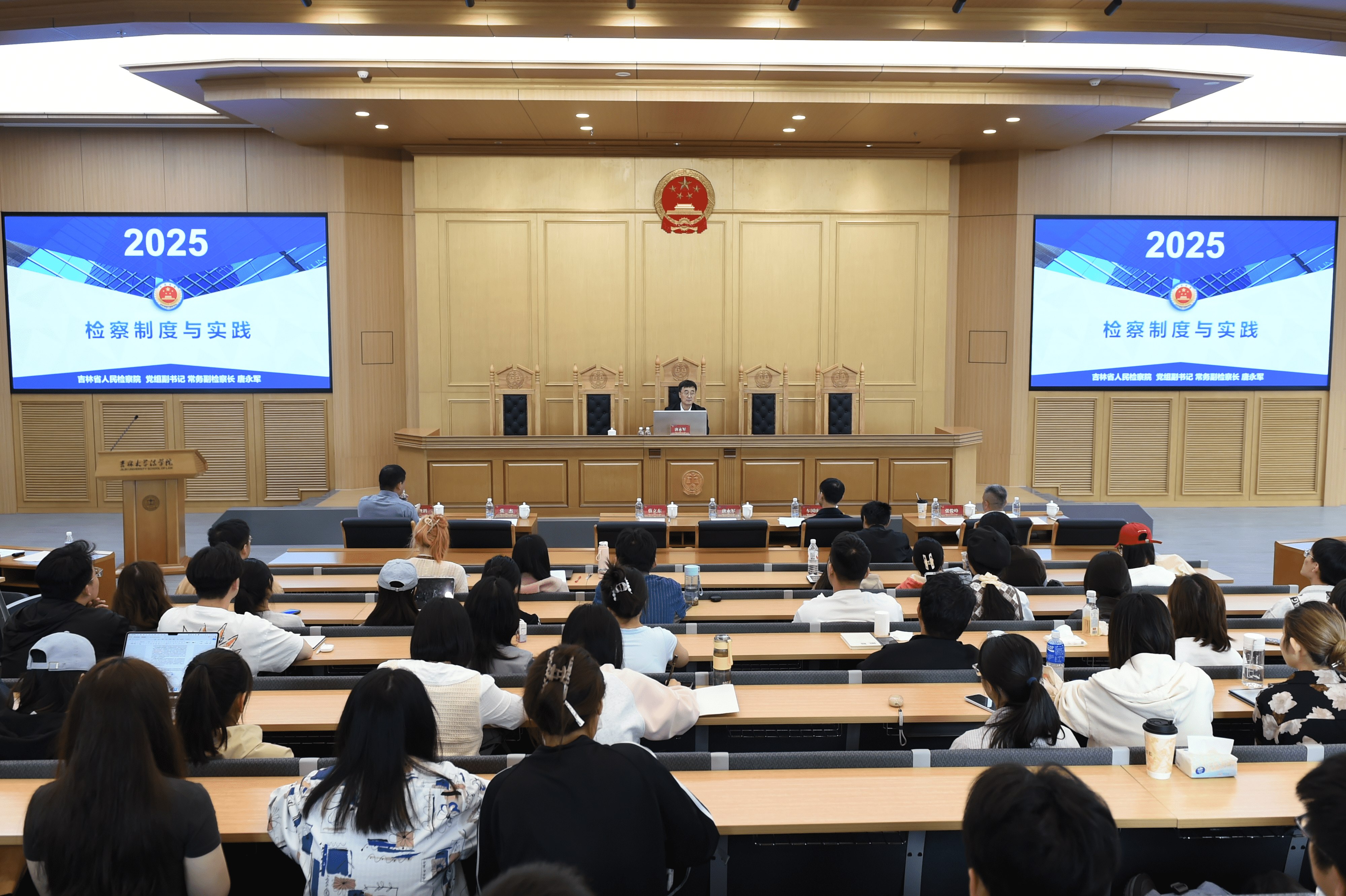 在理论阐释的基础上,唐永军常务副检察长重点围绕刑事检察、民事检察、行政检察、公益诉讼检察“四大检察”所承担的监督职能,系统讲解我国法律监督的主要框架、基本格局,同时,生动融入我省检察机关办理的大量鲜活、典型案例,通过层层推进各办案环节,将抽象的法律条文、复杂的司法程序、宏观的检察工作理念转化为生动易懂的教学内容,理论与实践结合,知与行融通。“听完专题授课,使我对中国检察制度的独特性和优越性有了更全面的把握”、“让我触摸到司法实务的温度与厚度,为未来投身国家法制建设打下坚实的基础”,授课引发了同学们的强烈共鸣和热烈讨论。