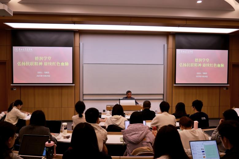 德润学堂“红色基因传承”的重要一环,得到学院党委高度重视,党委书记张杰,党委副书记兼副院长马旭,党委副书记张俊峰,徐卫东教授及商法教研部党支部教师,与百余名学生共同聆听。未来,学堂将持续挖掘地域红色资源,通过“后代讲历史”“专家释精神”“实践悟初心”等形式,让红色文化浸润校园,激励青年学子在新征程上传承红色薪火、书写奋斗华章。