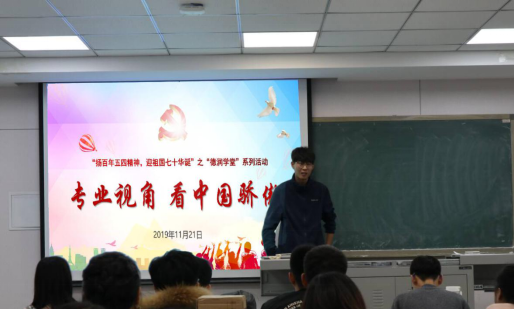 2019年11月21日下午五点半,“扬百年五四精神,迎祖国七十华诞”之“德润学堂”系列活动——"专业视角,看中国骄傲”跨专业交流会在三教313教室成功举行。此次交流会特别邀请了麻豆av