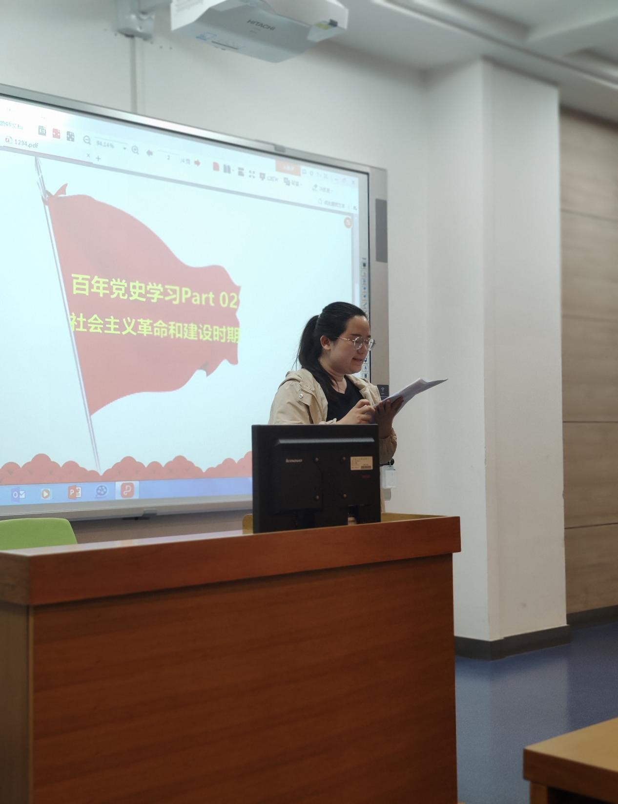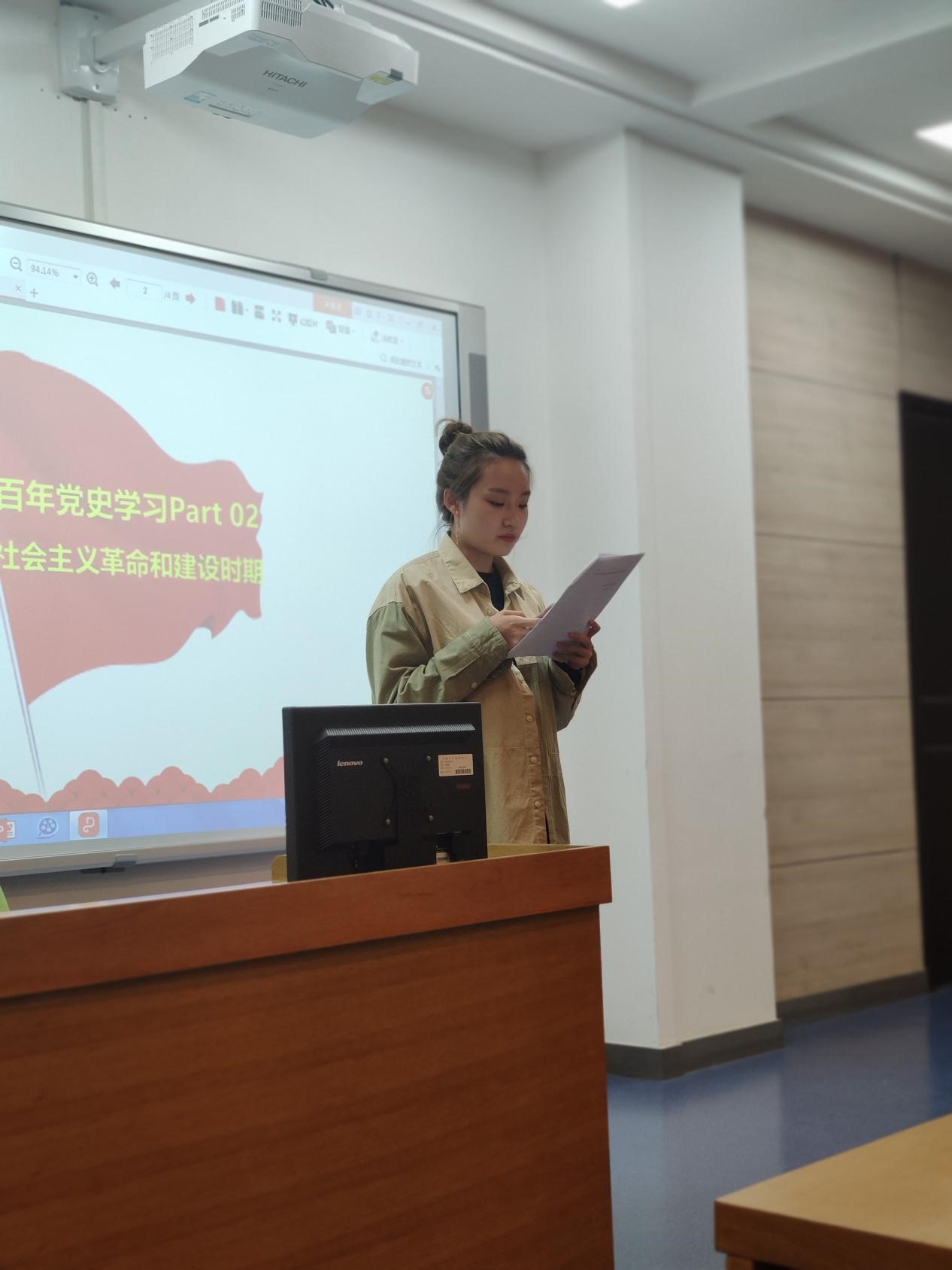 刘雅倩同志通过视频连线参加了本次活动,她发言强调了党史学习的重要性:通过学习党史,有利于我们以史为鉴,从党史中吸取经验教训,也有利于让我们从党史中坚定理想信念,让初心薪火相传,把使命永担在肩。我通过学习党史,从党走过的风云激荡的历史中、从党开创和不断推进的伟大事业中、从党全心全意为人民服务的根本宗旨和长期实践中,进一步深化了对党的信赖,也更加坚定对党的信念。