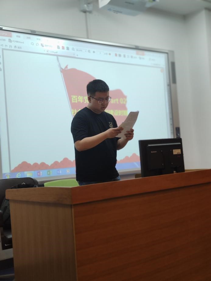 会议伊始,孙光辉同志作为领学人向大家介绍了本次活动的主题,并以时间为轴线梳理了社会主义革命和建设时期的历史。同时分享了对这一历史时期的学习感悟:“我们党在这一时期带领全国人民攻坚克难、直面现实、努力探索,闯出了一条独立自主之路,实现了从新民主主义社会到社会主义社会的过渡,建立了独立完整的工业体系和国民经济体系。我们党在探索建设社会主义的过程中也走过弯路、栽过跟头。作为新时代的青年,我们要学党史悟党史,总结经验吸取教训,坚持以马克思主义为指导,在遵循规律的基础上进行实践探索,在实践中弘扬这一时期涌现出的伟大精神。”