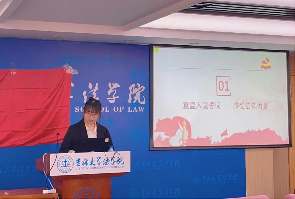 学习伟大历史,开启伟大征程。法学硕士第三党支部副书记汤俊蕊讲解播放《伟大征程:从一大到二十大》。通过视频生动形象的讲授,使得全体参与人在学习中增认同、在思考中悟真理,将中国共产党人筚路蓝缕中勇毅前行的伟大精神,逐渐内化于心外化于行。创新党史学习形式,赓续红色血脉,凝聚奋进力量。