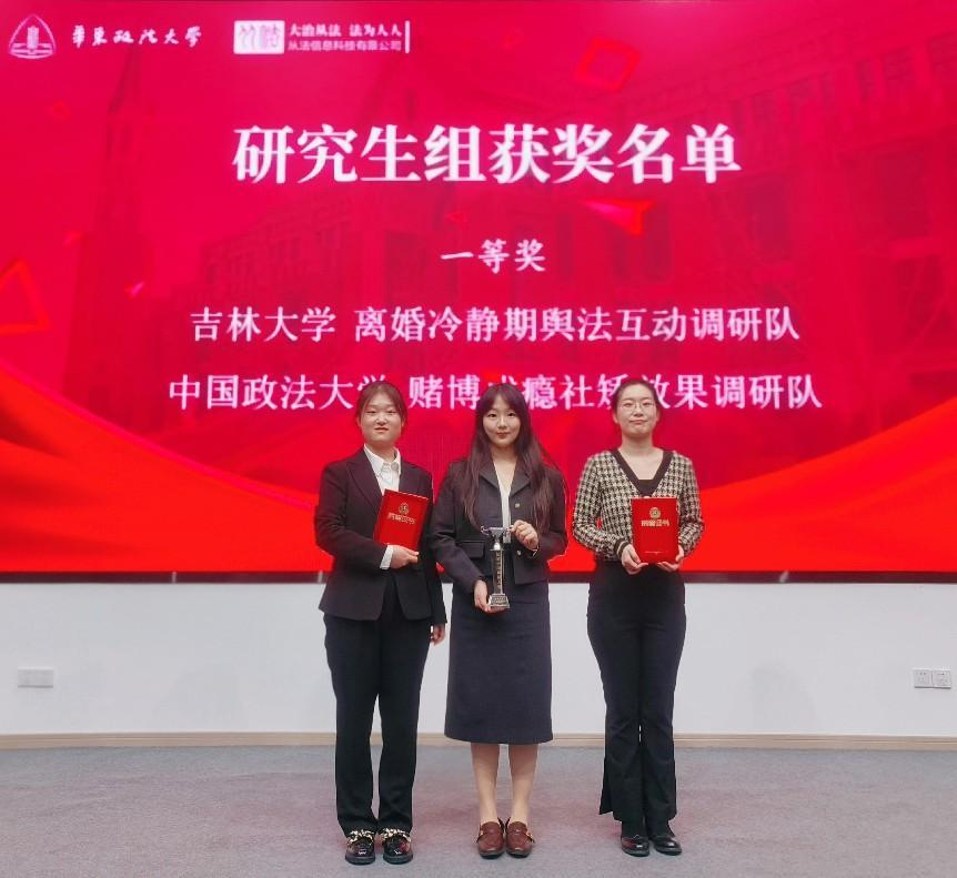 由李晓倩教授担任指导教师,2021级诉讼法学硕士研究生张雅倩担任队长,2021级诉讼法学硕士研究生于新雅、2022级诉讼法学硕士研究生曹莺、2021级本科生贺雯雯、2021级本科生王宁、2021级本科生郝星宇担任队员的“离婚冷静期舆法互动调研队”荣获研究生组一等奖!