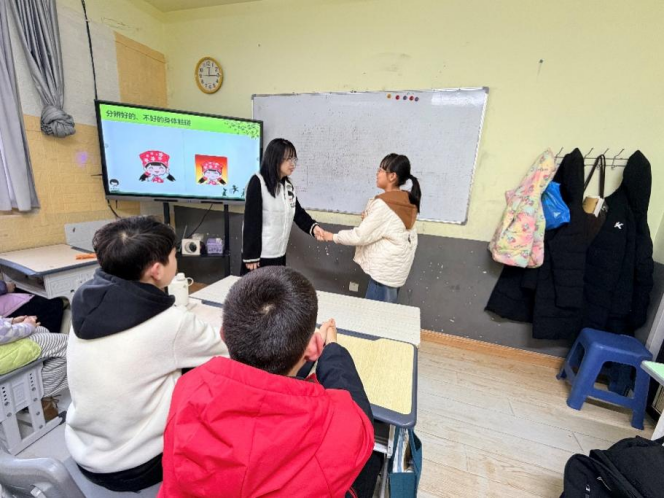 寒假期间,实践团成员走进山东省潍坊市安丘市“女童保护”一校一讲师志愿者团队。该团队通过建专业队伍、严讲师考核、定特色方案,常态化开展普法教育。志愿者讲师走进各中小学,以《未成年人保护法》等为依据,围绕隐私保护、防性侵、反校园欺凌等核心内容,用情景模拟、互动问答等趣味形式,让法律知识变得易懂好记,同时借助线上课程扩大普法覆盖面。
