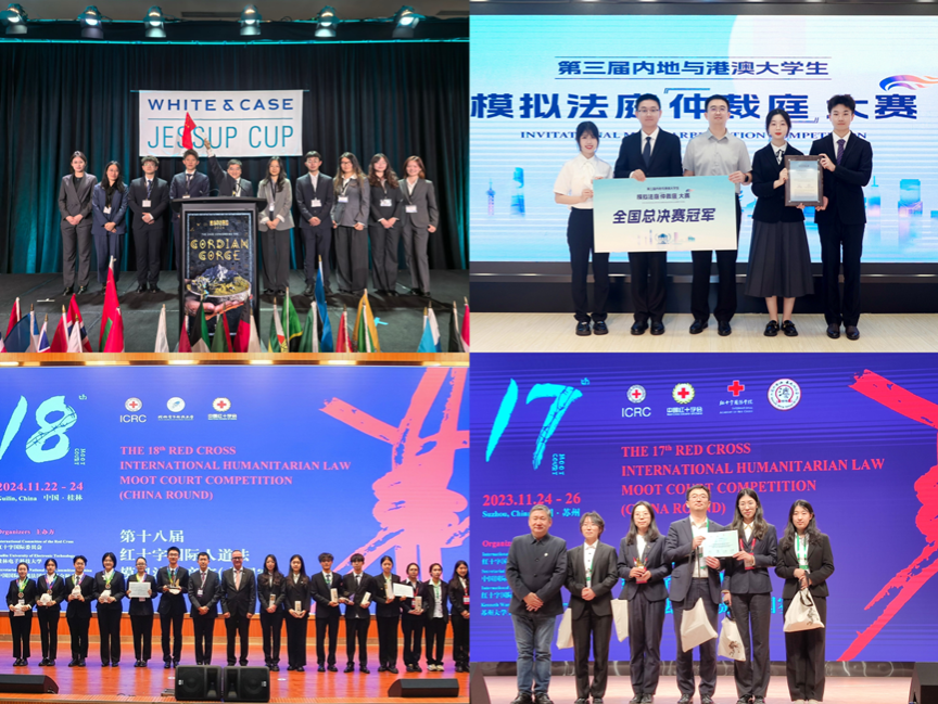 其中,红十字国际人道法模拟法庭竞赛自2021年以来连续取得全国一等奖4次,国际刑事法院英文模拟法庭竞赛、国际刑事法院中文模拟法庭竞赛自2023年至今每年均取得了全国一等奖,JESSUP国际法模拟法庭竞赛于2026年取得全国一等奖。