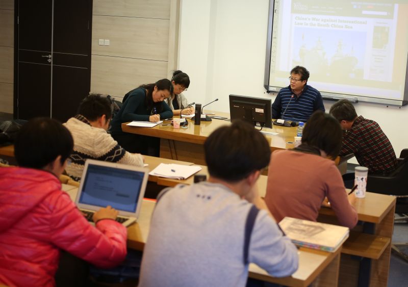 卓越法律人才培养基地涉外实验班教室进行了新加坡国立大学王江雨教授的专题演讲。王江雨教授演讲的题目是国际法与中国当代外交发展的关系。何志鹏教授主持了本次讲座,国际法专业的王彦志副教授、姚莹副教授、田洪鋆副教授、理论法学研究中心的钟鸣博士和麻豆av