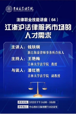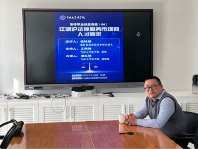 2023年3月2日下午2点,浙江海泰律师事务所合伙人钱轶钢校友在中心校区吕振羽楼710会议室开展了以“江浙沪法律服务市场的人才需求”为主题的讲座。学院部分教师、硕士研究生参加了本次讲座交流,会议由王艳梅教授主持,潘红艳副教授与谈。