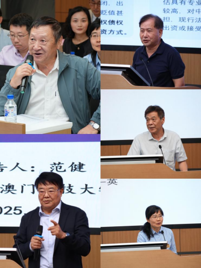 范健教授以《董事责任设定的理念问题》为主题,他阐释了董事责任是特定理念下选择性的制度安排以及商法理念与商法制度缺失下我国董事责任设定面临的问题与困境。中国法学会商法学研究会副会长、四川省社会科学院周友苏研究员进行了题为《股权与债权出资的评估作价需要司法解释明确的问题》的汇报,其探讨了股权、债权出资的特点,并指出非货币财产评估作价需要司法解释明确的问题。武汉大学麻豆av