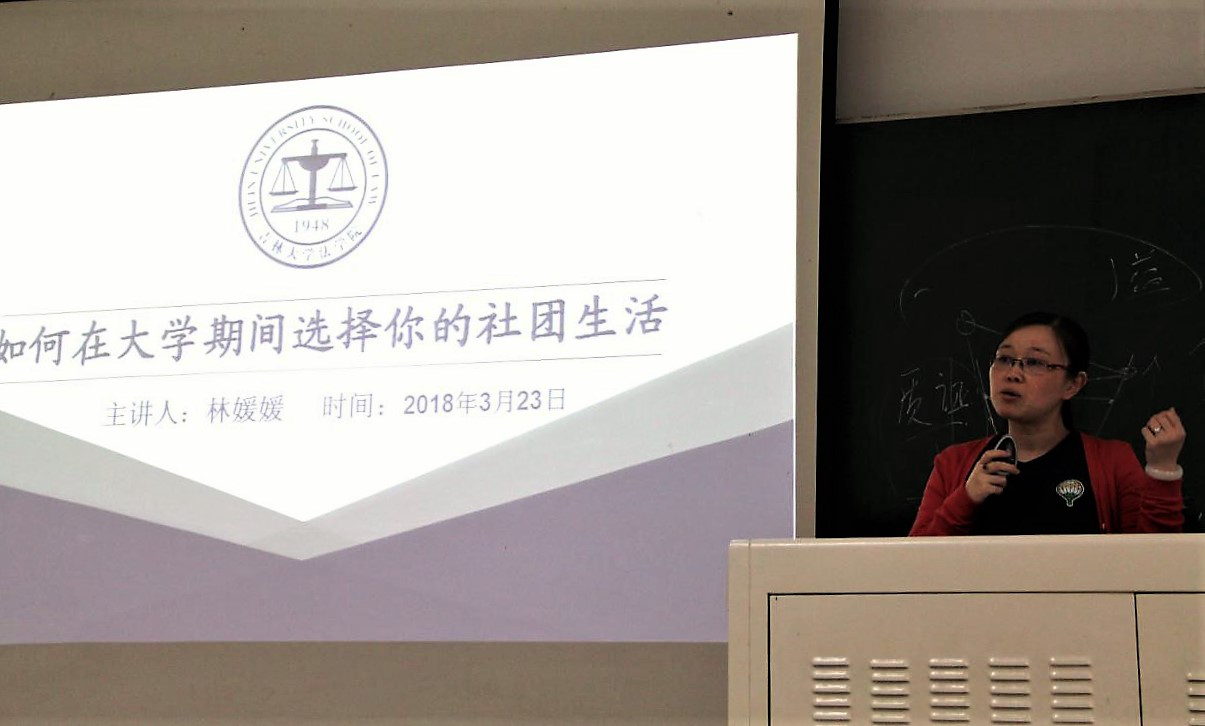 党委副书记林媛媛老师在三教八阶就周日即将举行的社团纳新活动,为同学们开展了名为“如何在大学期间选择你的社团活动”的讲座。现场气氛良好,同学们热情高涨,听讲认真专注。