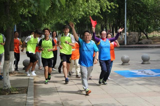 虽然阳光炙烤,但是参跑马拉松的老师和同学的脸上都洋溢着笑容,他们流着汗水,坚持着,并且满怀热情。参与组织工作的学生会同学更是忙前忙后,以保证好活动的顺利进行,观众积极地迎接每一组跑赛队伍,每一组的运动员都在同学们的欢呼中,喊着嘹亮的口号离开,在同学们的喝彩中,挥舞双手昂扬归来。在运动员进行马拉松期间,学生会同学还组织了套圈、球拍运乒乓球等小游戏,为活动增添了趣味性,使现场气氛更加活跃。