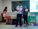 在大一、大二以及部分大三的同学到齐后,晚会正式开始。晚会的主持人是11级团支书赵晨希和文艺委员赵燕霞。首先举行的是4班的传统节目——12级同学朗读事先准备好的11级同学的个人描述,由其他11级同学猜测所属何人,再由该人对应学号的12级同学进行自我介绍,新老生在活跃的气氛中很快加深了对彼此的了解。接下来,12级才艺表演与各项游戏环节交替进行。新生们的才艺包括演唱各种流行歌曲、富于动感的舞蹈表演等,令人陶醉。游戏则包括“我来比划你来猜”“我爱记歌词”“抱球过障碍”“抢凳子”等,新老生一同积极参加,互相比试,几度将晚会推向了高潮。
