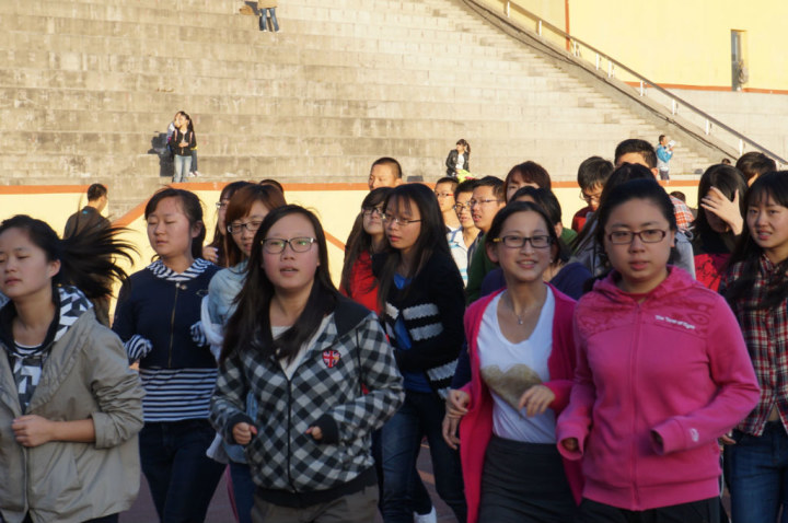 2012级、2013级全体同学响应学校号召,齐聚体育场,以饱满的精神面貌,进行晨跑以及其他体育锻炼活动。