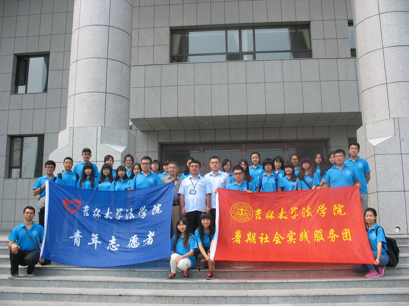 2014年“三下乡”社会实践团队一行30余人在团委书记、2012级辅导员高岩老师的带领下,来到了期待已久的蛟河市人民法院参观和听审。蛟河市人民法院副院长徐亮和张亮法官热情地接待了实践团队的成员们。