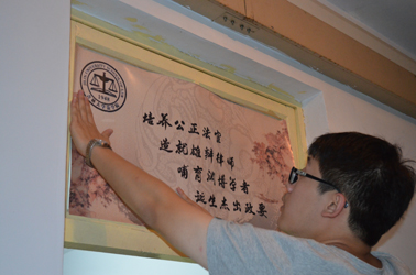 生管会的同学开始清扫和布置2014级新生寝室,为新生寝室张贴门楣、门贴和床位标签。生管会一行20余名同学首先到南苑二公寓进行男生寝室的清洁和布置,然后前往经信C公寓对女生寝室进行清洁和布置。经过两个多小时的辛勤劳动,生管会的同学们将一间间寝室布置得整整洁洁,为即将入住的新同学营造良好的环境。
