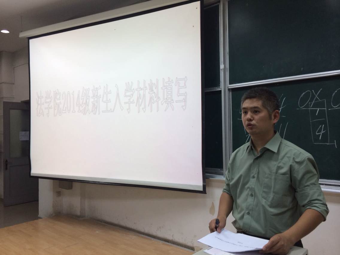 团委书记、2014级新生辅导员高岩老师和各班新生班主任的带领下来到第三教学楼第十三阶梯教室填写新生入学材料。首先高老师向大家讲解了填写时的注意事项,紧接着新同学们便一丝不苟的填写起来。