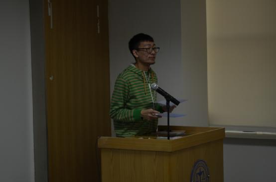 第三项是各部负责人对本部门的介绍,最先上台的是摄影部的副部覃黄腾,他说:“摄影部顾名思义,需要做的就是拍照与录像。”并为大家呈现了过去一年来摄影部的许多作品。他说:“摄影是镜头后默默的付出,黑暗中的执着坚守。累并快乐着,只为留下美好的瞬间。”紧接着是秘书部副部王新茹与新闻部赵汗青带来的精彩介绍,他们分别介绍了部门的现有成员并详细讲解了各部主要的工作任务,同时对新成员的加入表示欢迎并对通讯社的未来表示期待。网编部的两位副部王桃与滕雨杉则介绍了主要工作任务,她们说:“既然选择了通讯社,便只顾风雨兼程:既然选择了网编部,留给世界的只能是背影。”最后,技术部副部赵志荣为大家展示了精美的PPT,并介绍了技术部的主要成员及工作任务。最后是新成员自我介绍和各部门的精彩节目。在社长刘见的一首《那些花儿》的华丽开场后,14级同学们积极踊跃,争相表演。一时间气氛活跃。