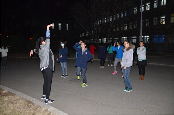 能在运动会上展现风采,同学们积极投入,认真练习;在晚上只有几度的天气中,同学们也不怕严寒和辛苦,坚持到室外练舞。希望同学们一直保持这种热情饱满、不畏困难的状态,参与以后的每一次排练,并在排练中收获新的东西,为自己的大学生活添上新的一笔色彩。