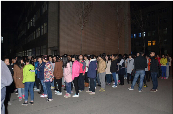 2014级全体女生在经信教学楼楼下展开了运动会集体项目之一大舞的第一次排练。