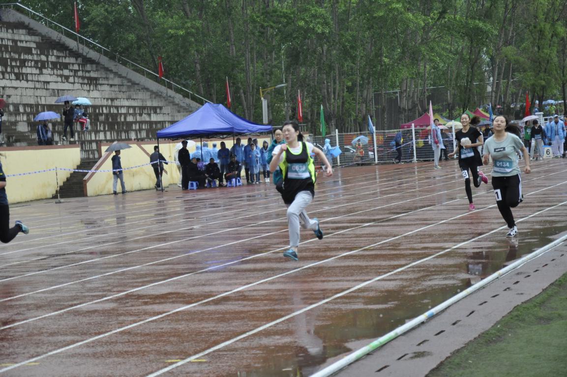 的“前线指挥中心”。即使天公不作美,春寒料峭也不能阻挡火热的脚步。那如猎豹般的爆发力、急速冲刺的是男女学生组100米的运动员们,个个斗志昂扬,青春逼人;那配合默契、心有灵犀的是男女学生组4×100米的选手们,他们同心协力,为集体而战;那步伐稳健、坚持到底的男子5000米和女子3000米的勇者们,人人意志顽强、不言放弃;还有那腾空而起、跳跃出优美弧线的跳高选手们,骐骥一跃、已然十步的跳远运动员们,以及各院系老师们不逊于年轻人的精彩表现……所有这一切,都让体育场充满如火的激情,驱散阴雨沉闷的不适。