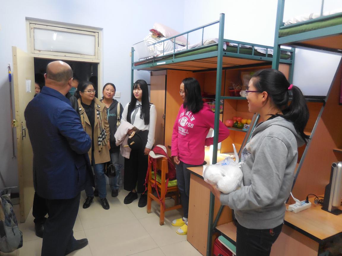 大家庭的温暖足以抵消思念;苹果代表平安,祝愿每位同学都平安快乐,健康成长……在老师们走到15级2班寝室时,同学们正在看书,李洪明书记赞扬了这种刻苦学习的风气,鼓励大家好好学习,珍惜时光。在了解很多同学都参加了新生辩论训练的情况后,赵洁老师指出,虽然参加训练有时是熬人的、累人的,但是这样的生活却是更加充实的、珍贵的,她勉励大家积极进取,勇往直前。同学们获益匪浅。