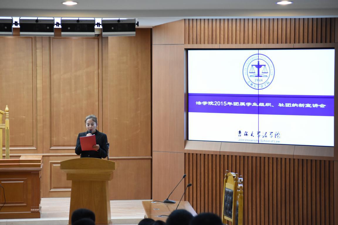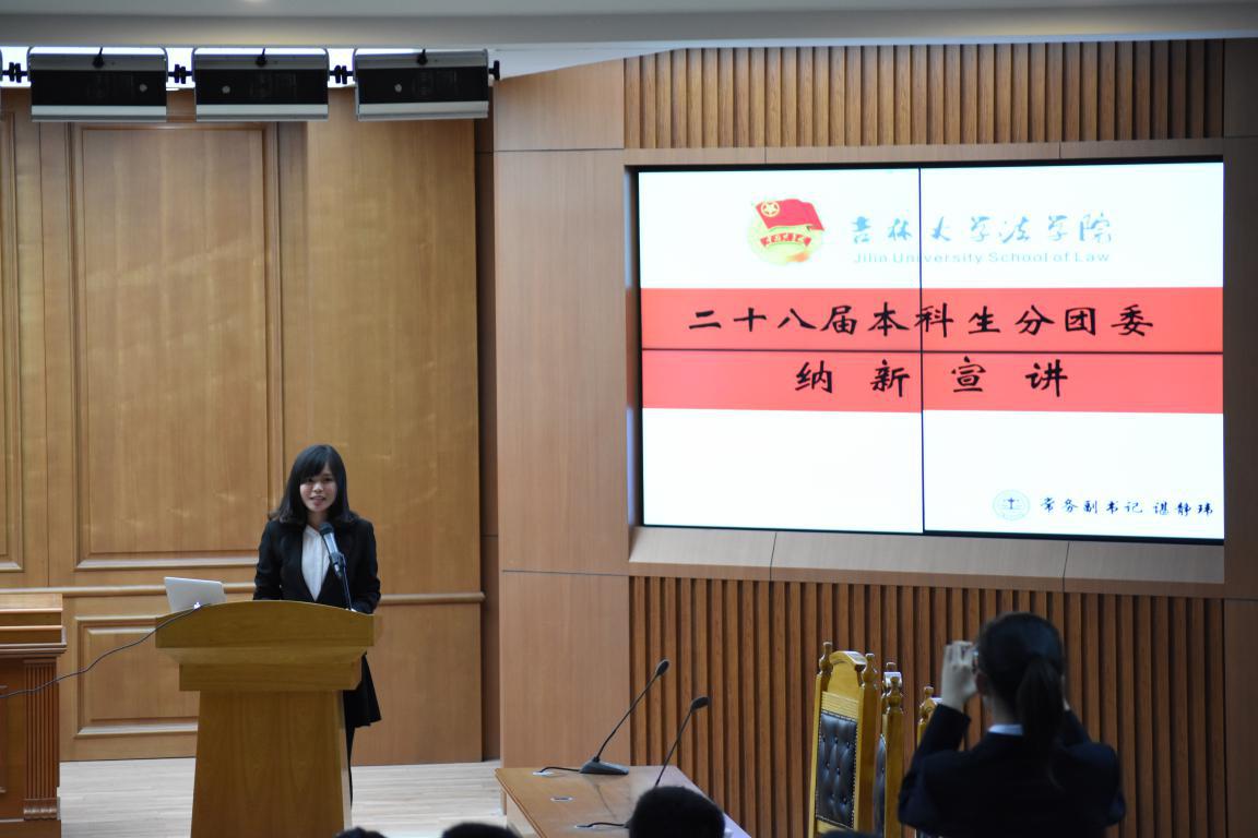 法苑芳华微信公众平台的负责人王蔚同学带着工作伙伴,走出幕后,走到幕前,向所有小鲜肉们推荐这个活力四射、拥有无限可能的项目。遇见吉大公众订阅号平台负责人滕雨杉,风趣幽默,文艺煽情,使得新生们目不转睛,兴趣勃勃。