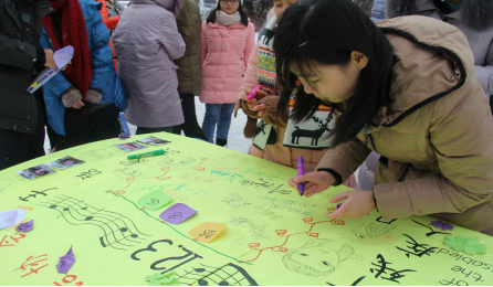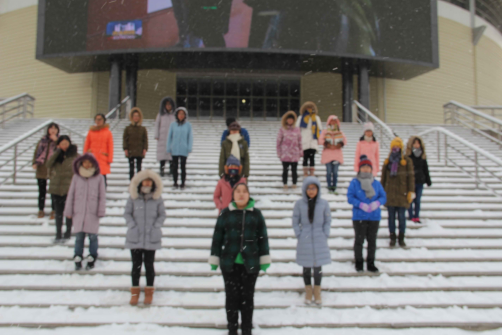 大雪纷飞,天气严寒,心绪成员们用一种无声的语言诉说着我们的期许,心形的队伍爱的诠释,手指的抖动是心绪爱的坚持。“把你的心我的心串一串”“我终于看到所有梦想都开花”“让我们此刻相逢our home”“幸福和快乐是结局”……指尖飞扬的歌,心底流淌的河,爱之心绪,爱意密布。