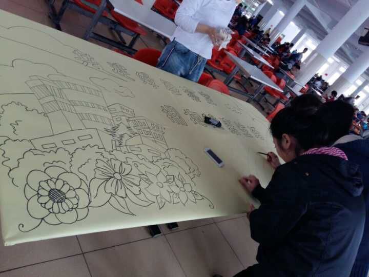 2016年5月14日清晨,生管会宣传部绘制展板的工作人员早早地集合在新食堂,并迅速投入到工作当中。大家集中精神、齐心协力,终于在数个小时的努力之后完成了展板的设计与绘制。5月14日下午,展板已经放置在大学城二公寓、三公寓进行展出,使得活动的宣传展板得以及时呈现在同学们面前,对活动的宣传、绿色寝室理念的推进产生了十分重要的推动作用。