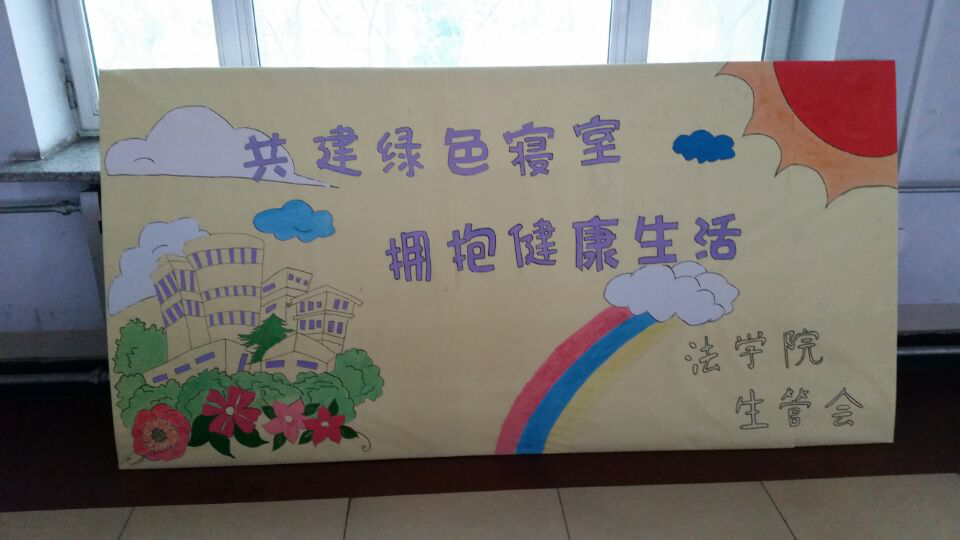 “共建绿色寝室,拥抱健康生活”公寓文化精品立项活动在5月份如期开展。作为系列活动的开端以及项目的一部分,宣传展板的绘制必不可少,以促进同学们主动参与到活动之中,并且使得活动对同学们的健康生活产生最大程度的推动性作用。