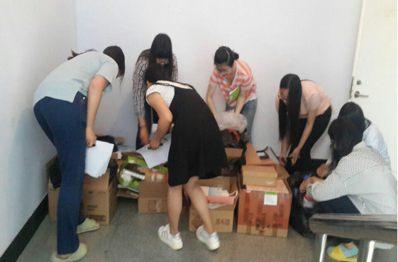 5月22日上午十点,生管会工作人员针对2015级寝室,开始了废品的回收工作。他们每两个人一组对大家早早准备在寝室门口的废旧书报、塑料瓶等进行走寝回收。为了根据上交废品的多少确定绿植的品种,工作人员对于瓶子、纸箱按照数量计算;对于废纸,则用尺子进行了厚度测量并进行相关记录。由于活动宣传到位,同学们对于此次活动也是积极响应,废品回收收获颇丰,工作人员将废品整理之后,联系寝室管理员进行了妥善处理。
