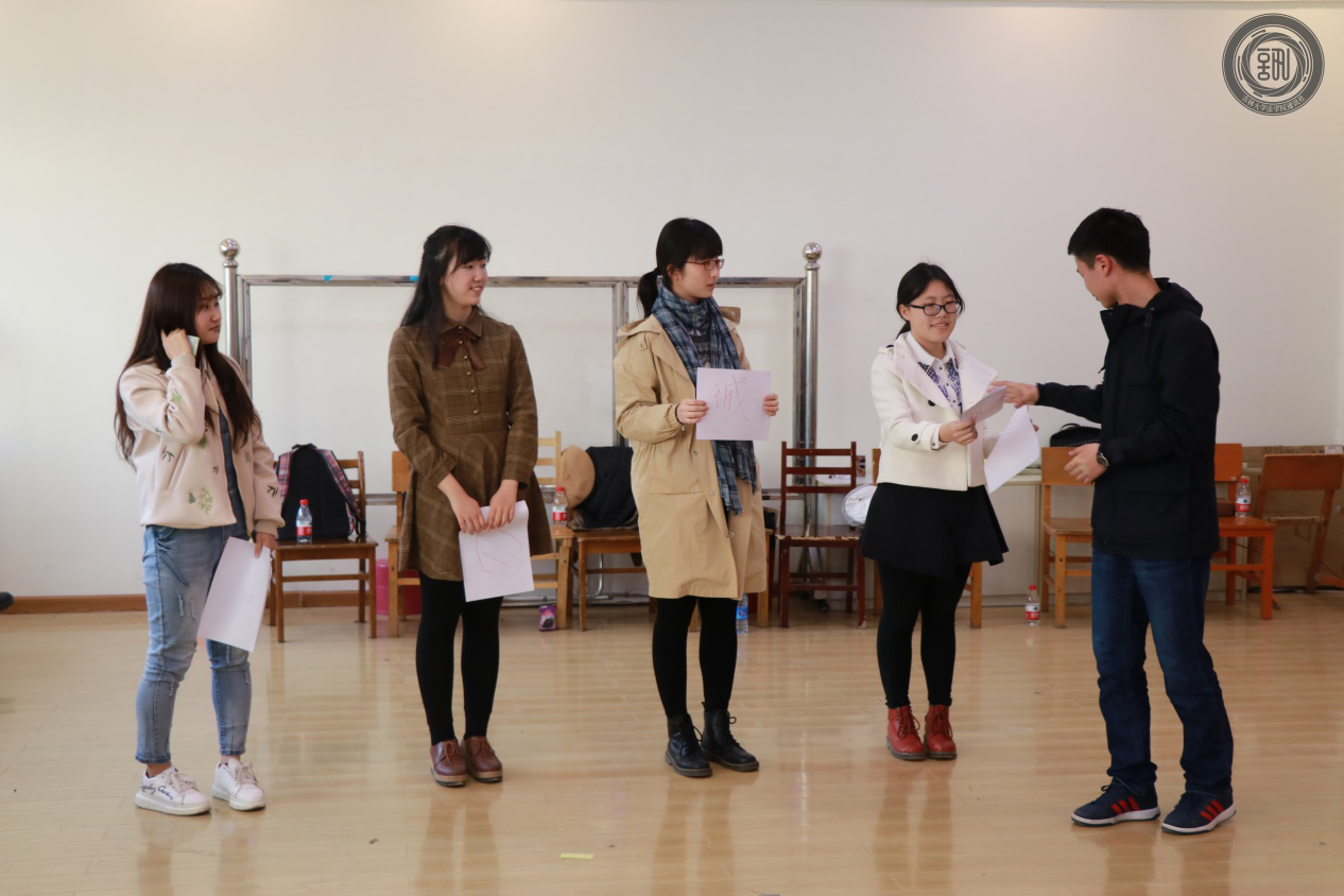 在简单热身后,活动正式开始。首先,朋辈指出如今情绪的控制和宣泄成为当代大学生最大的难题,学会情绪的表达也就成为了我们要学习的不可或少的一课。因此第一环节进行了一个关于情绪表达的游戏,即同学三两一组,每人手执一张情绪卡片,然后将各自的情绪串联在一起编演一个故事。简单的商讨之后,第一组的“送外卖”、第二组的“考试”、第三组的“比身高”以及第四组的“相亲”相继上演,各组的形式别出心裁,同学们更是各显神通,将自己的情绪卡片内容表现得活灵活现。紧接着,第二环节是“人椅破冰”游戏,以便促进同学之间的默契和团结,五班同学玩的不亦乐乎,不仅收获了游戏中的欢乐,更是增强了同学们之间的信任。随后,在舒缓的背景音乐下,同学们被分成两组,顺时针传递一张写着自己名字的纸条,每个同学都在纸上写下该同学的优点,同学们认真思考和书写着,渐渐地学会欣赏身边的人、学会发现身边的美。而在收到自己纸条的同时,大家也收获了自信,懂得了欣赏自己、肯定自己。活动进入尾声,在一张大大的彩纸上,五班全体同学开始绘制属于自己班级的团体树,大家你一笔我一画,在欢声笑语中留下了永久的回忆,最后,五班全体同学与班代师姐一起合影留念。