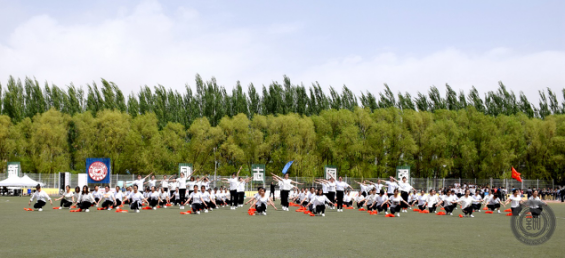 100名女生组成的队伍身着统一的服饰,在耀眼的阳光下仍然保持着精神饱满,斗志昂扬的状态。