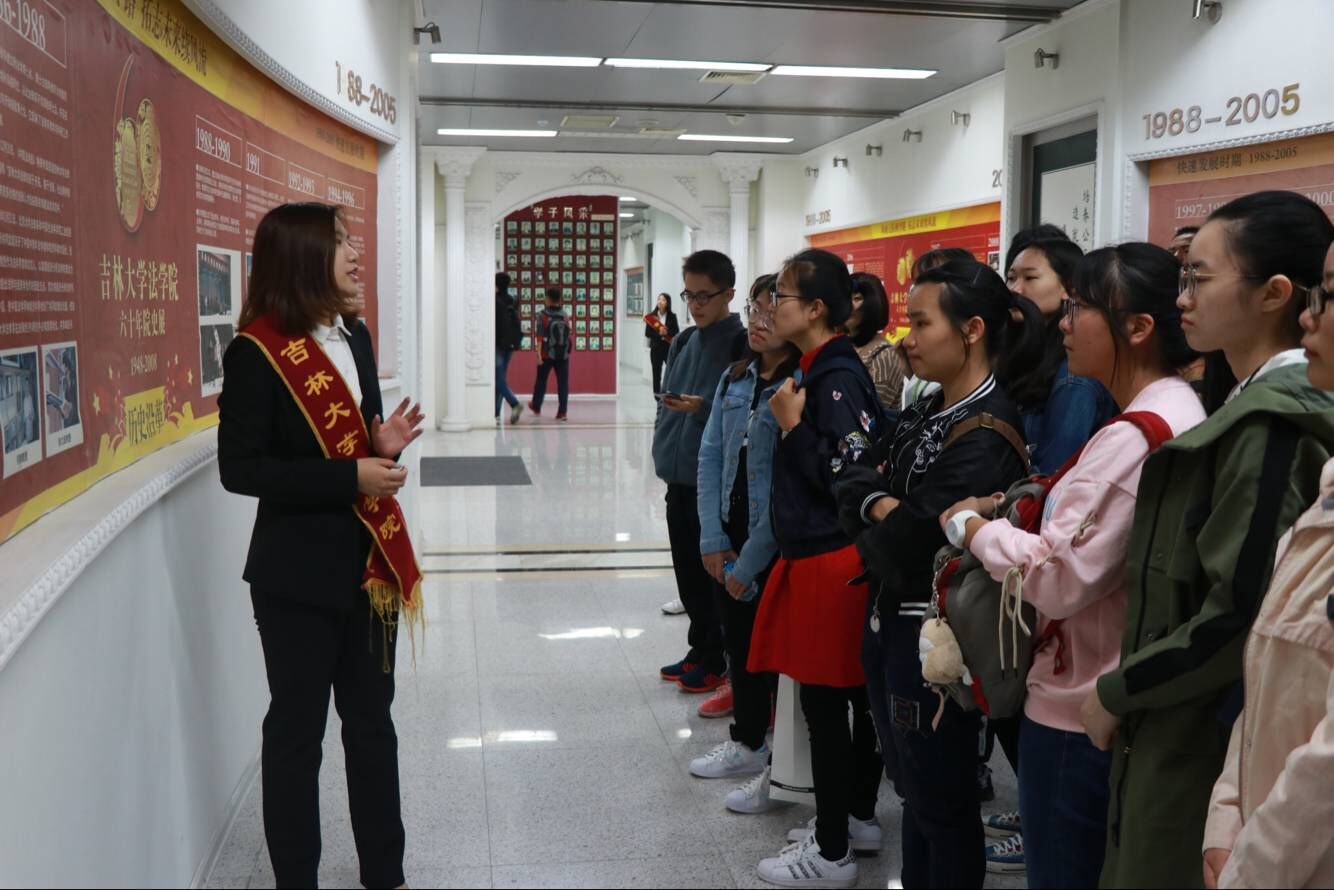来到三楼的院史馆,穿过时间隧道,眼前豁然开朗,历史的沙漏开始倒流,一幅幅拼搏不懈、志存高远的画卷徐徐展开。学生会的讲解员耐心向新生们讲解展板内容,追溯峥嵘岁月,将一代代吉大法学人的传承诉说,同学们时常发出由衷的感叹。辉煌的麻豆av